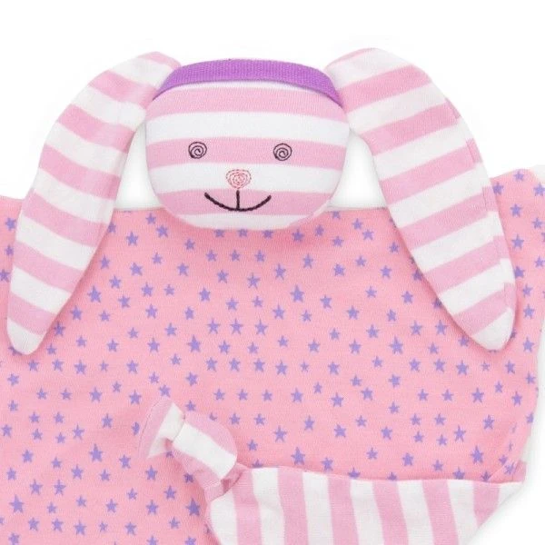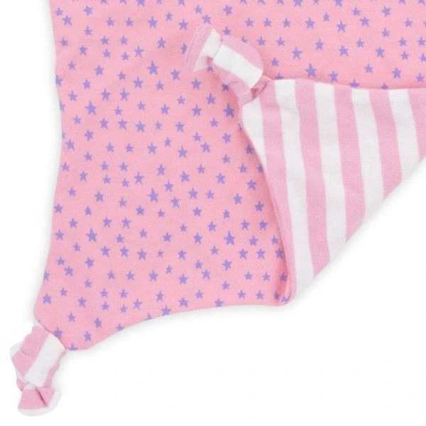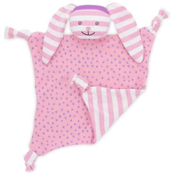 Pour les bébés bio, et dès la naissance, Eveil physique, Jeux & réconfort avec ce joli Doudou Carré Plat Hochet Apple Park™ Lapine hiP Hop en Coton Bio. Un doudou mouchoir, plat et carré, dont les pattes sont de petits nœuds à mâchouiller, le ventre côté face est fait d’un doux jersey de coton bio imprimé d’étoiles violettes sur un joli fond rose et côté dos, un jersey rayé blanc et rose tendre,… et bien sûr la sympathique bouille bien veillante de notre petite star souriante aux longues oreilles à secrets est là pour rassurer bébé. Avec ce Doudou plat Organic Farm Buddies™, Bébé pourra se dégourdir les doigts, mâchouiller, découvrir les couleurs, les formes, et les câlins. La tête du doudou contient comme les hochets un petit grelot discret.