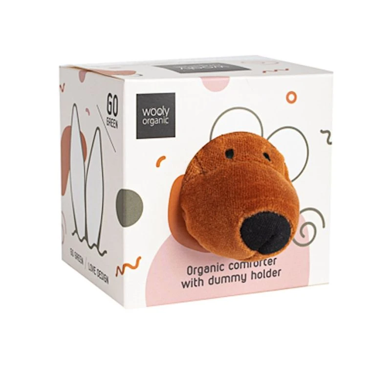 ✎ Les Doudou Plat Attache sucette Ours Caramel Wooly Organic® Coton Bio 25 cm Détails