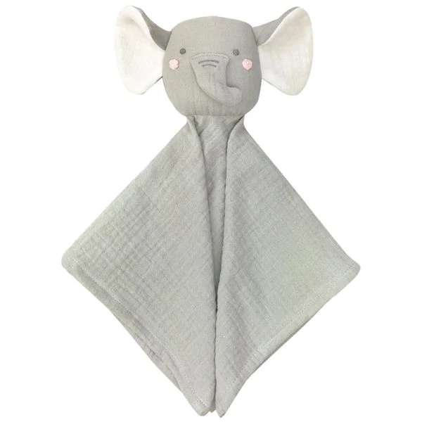 Pour les petits écolos, douceur et réconfort en compagnie de ce joli Doudou Lange de mousseline Eléphant Estelle Albetta® 35cm Coton bio. Un doudou éléphant en mousseline de coton bio, de couleur grise, qui a de grandes oreilles et une trompe, avec un visage brodé et crochetés à la main. Un incontournable pour tout petit.. Un petite tête molletonnée pour bientôt lui dévoiler des petits secrets. Bébé trouvera réconfort et découverte de sensations diverses. Cet éléphant sera parfait pour que les tout-petits se blottissent la nuit!