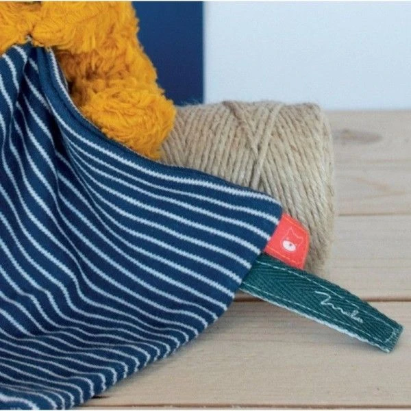 Pour les bébés bio dès la naissance, éveil émotionnel et câlins éclatants de tendresse et de bonne humeur avec ce joli doudou plat carré et sa peluche en coton Doudou plat & Pantin Renard peluche15 cm Maïlou Tradition® coton bio. Une doudou plat avec sa peluche en forme de renard aux belles couleurs orangées. Les petites yeux noirs du renard sont là pour rassurer bébé. Un carré de coton au style marin, pour chatouiller le nez pour se réconforter et pour dégourdir les petits doigts. Un doudou rigolo fait en France, 100% Breizh et en coton bio certifié GOTS, pour un enfant unique en quête de découvrir et d’évoluer dans un monde durable !