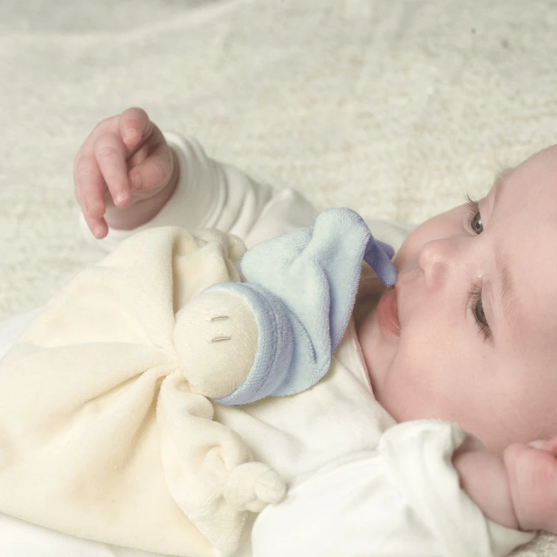 ✎ Les Doudous Keptin-Jr Coton Bio Zmooz Bleu Ciel small 16 cm détail
