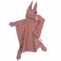 Doudou Plat Carré Lapin CeriseFabelab® Mousseline Coton Bio GOTS- Doudou Bio Scandinave
