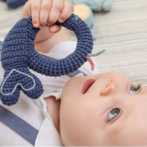 Les Hochets au crochet Hoppa® Baleine Coton naturel sont réalisés avec soin. Un hochet fabriqué à partir de Coton, alors que le remplissage des doudous est réalisé en polyester au Viet Nam.