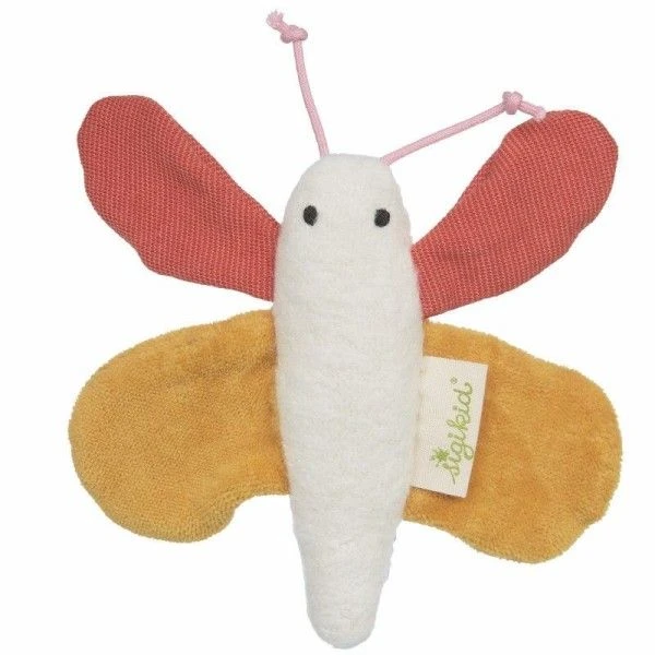 Pour les bébés bio & écolo, et dès la naissance, Eveil, confort & réconfort en compagnie de cet joli petit Hochet Tissu Sigikid® Papillon Green 12 cm .. Un joli Hochet peluche en forme de papillon sympathique pour tenir compagnie à bébé. Avec ses petits yeux noir, , son corps en coton tout doux… avec de petites ailes pour le tenir et le mâchouiller tendrement, ce papillon ne quittera plus bébé. Protecteur de la nature et défenseur du développement durable, bébé le revendique avec ce joli hochet papillon, amusant, protecteur, Chic & écolo. Le coton bio à la texture douce de notre peluche renard, qui offre des sensations tactiles et visuelles inoubliables. En compagnie de ce doudou bio en coton, rempli de Laine naturelle et de coton, bébé est prêt à affronter le monde, en douceur, en couleur et en sécurité: Le doudou est en coton, un Coton Bio issu de l’agriculture Biologique (Kba : Agriculture Biologique Contrôlée)et rembourré en laine.