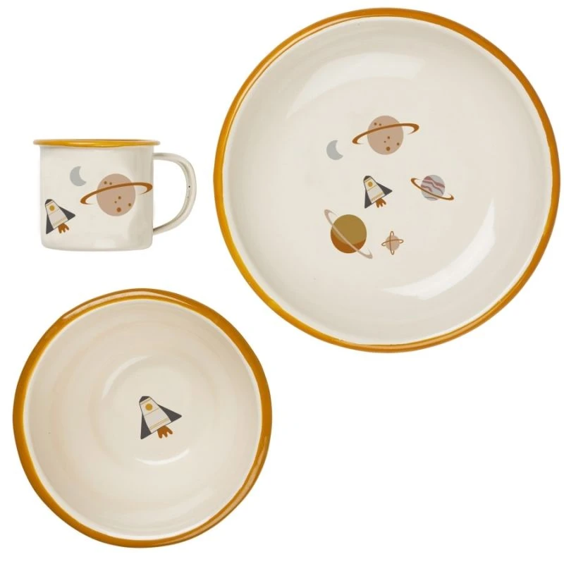 ✎ Les Sets Vaisselle enfant Acier Émaillé 3 pièces Univers de Planètes Fabelab® détails