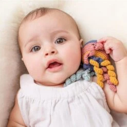 Hochet Poulpe Rose Pale 15cm Pebble® Maille Crochet Coton Bio – Doudou Bébé Bio